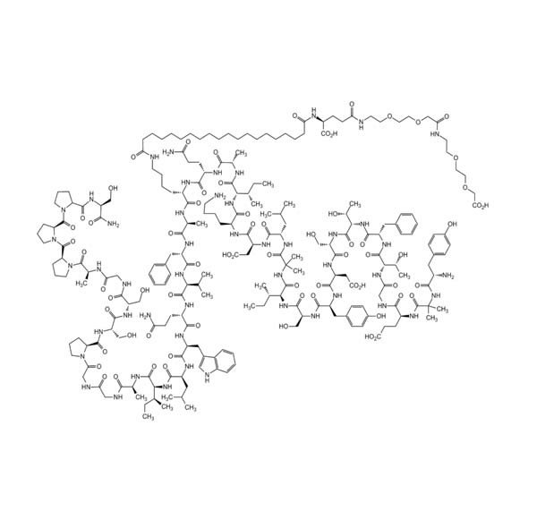 Tirzepatide is a glucose-dependent insulin-stimulating peptide (GIP) and glucagon-like peptide-1 (GLP-1) receptor dual agonist that integrates the two insulin-stimulating effects into a single molecule. Through a dual mechanism of action to activate the hormone receptors involved in blood glucose control -GIP and GLP-1 two incretin receptors.
